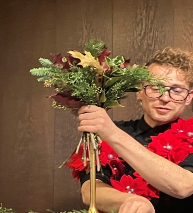 Til daglig fremtryller Jonas de smukkeste blomsterbuketter i sin lille butik i Vingårdsgade. Jonas kommer på Kunstcentret og giver dig inspiration og gode ideer til årets juledekorationer.